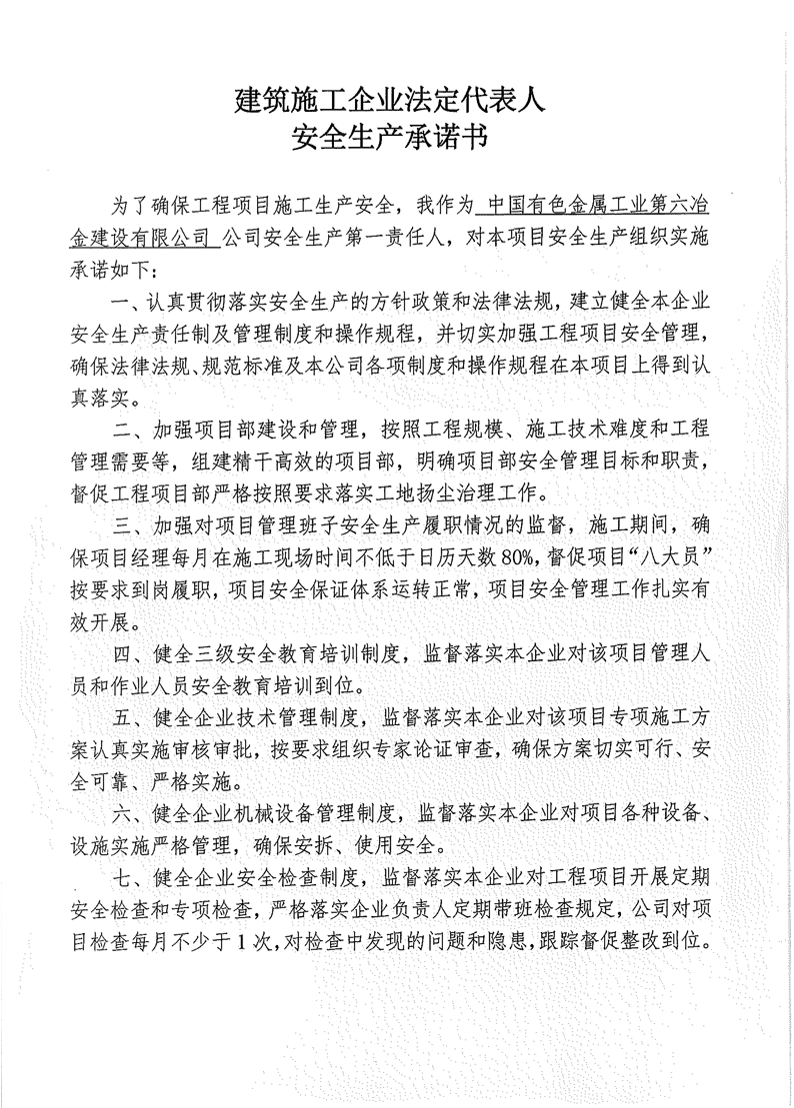 六冶建設--安全承諾書