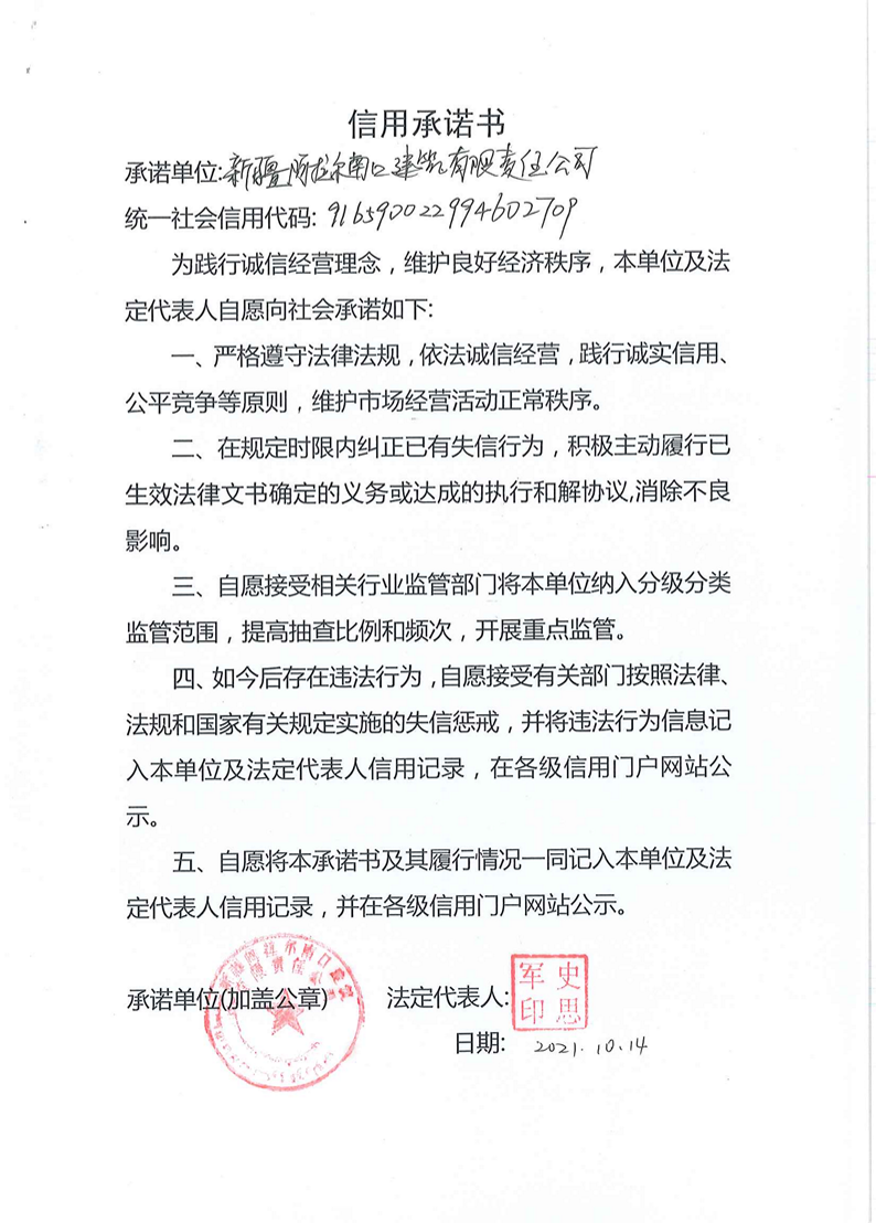 南口建司--信用承諾書