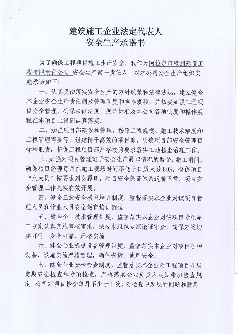 綠洲建司--安全生產承諾書
