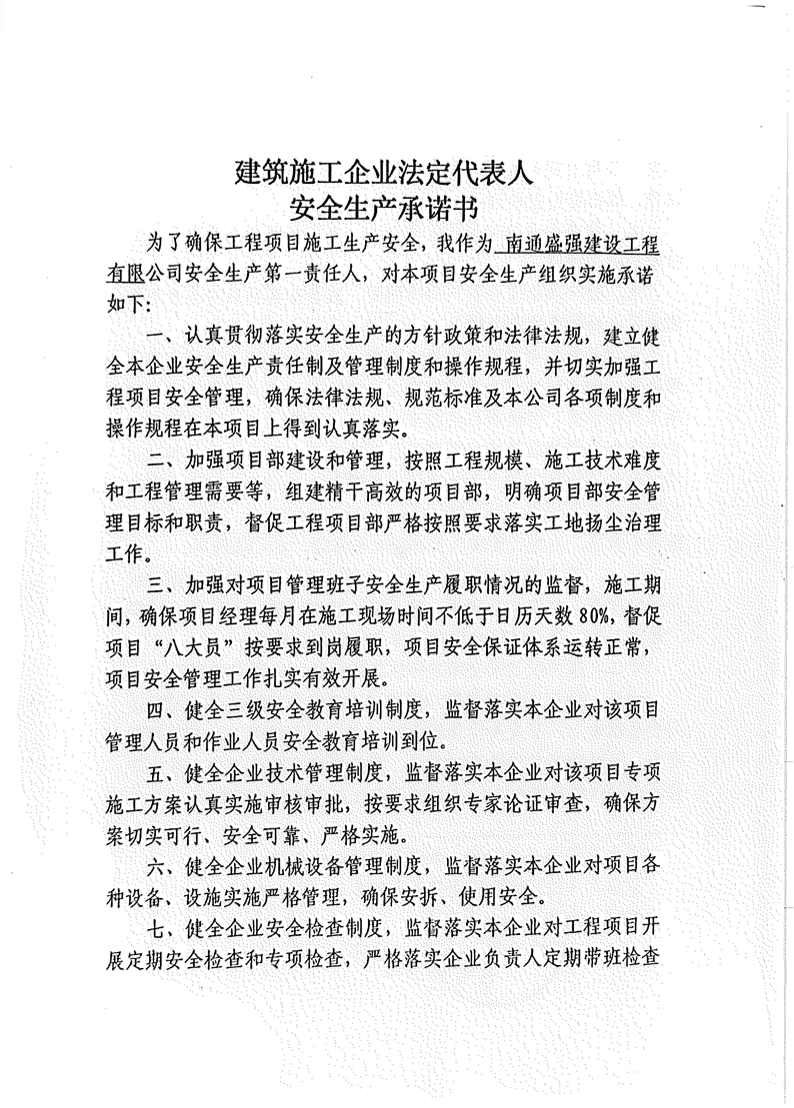 南通盛強(qiáng)--安全生產(chǎn)承諾書