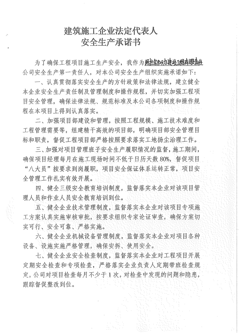 天力建司--安全生產承諾書