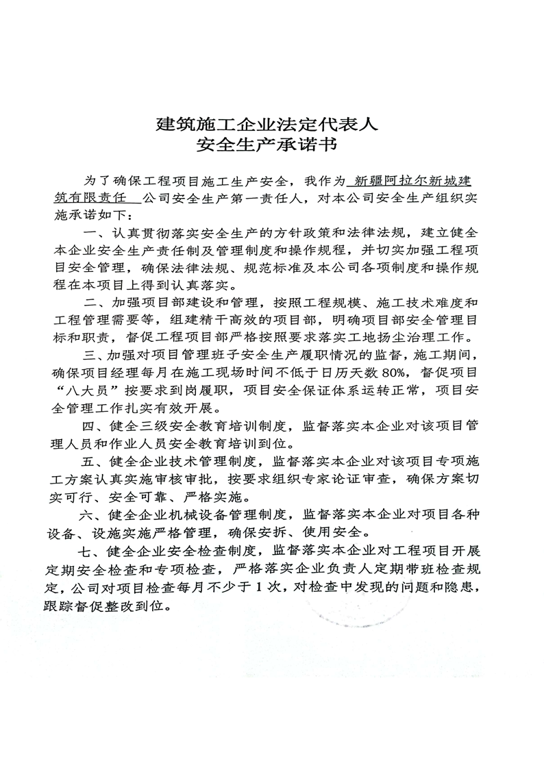 新城建司--安全生產(chǎn)承諾書