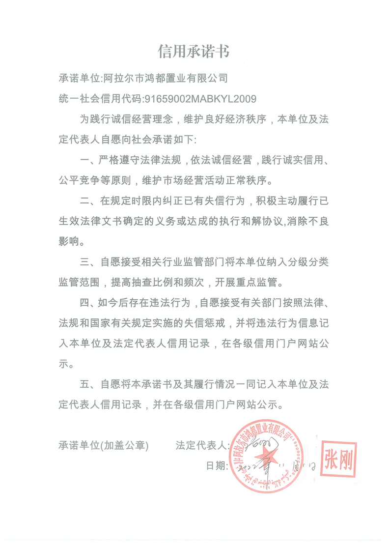 鴻都置業有限公司--信用承諾書