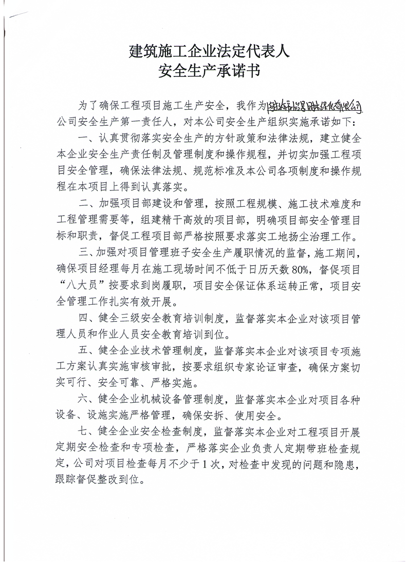 怡景園林安全生產承諾書