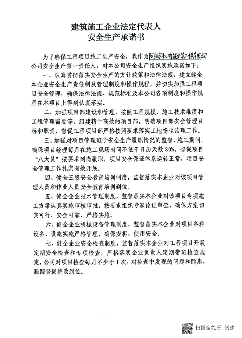 鴻越建司安全生產承諾書