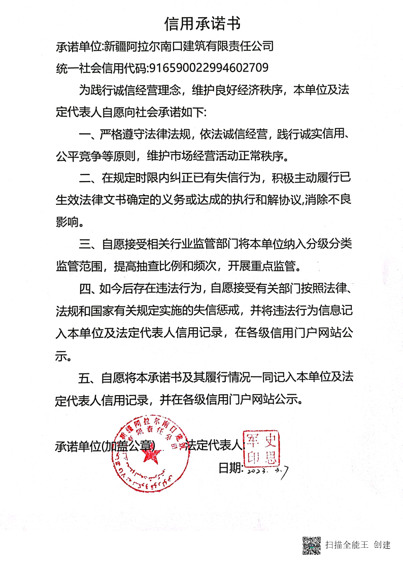 南口建司-信用承諾書