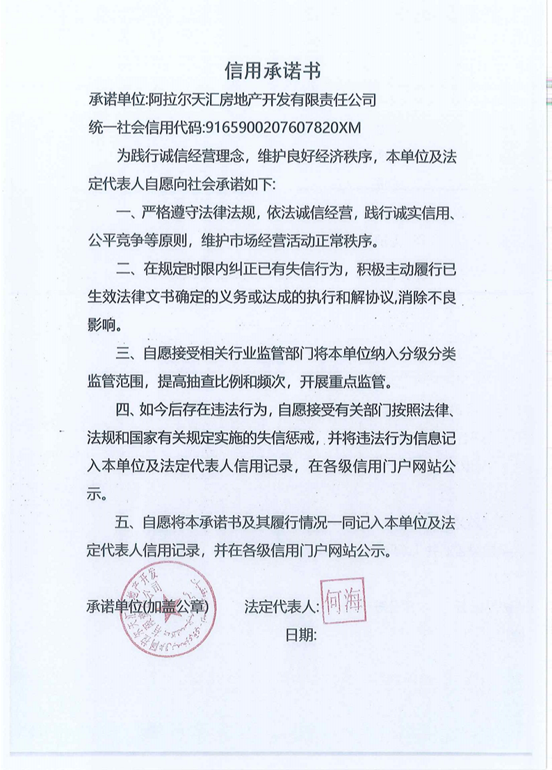 天匯房地產信用承諾書