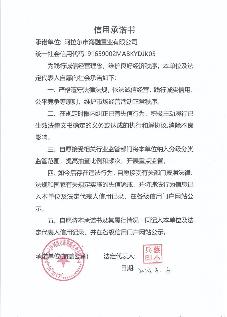 海融置業信用承諾書