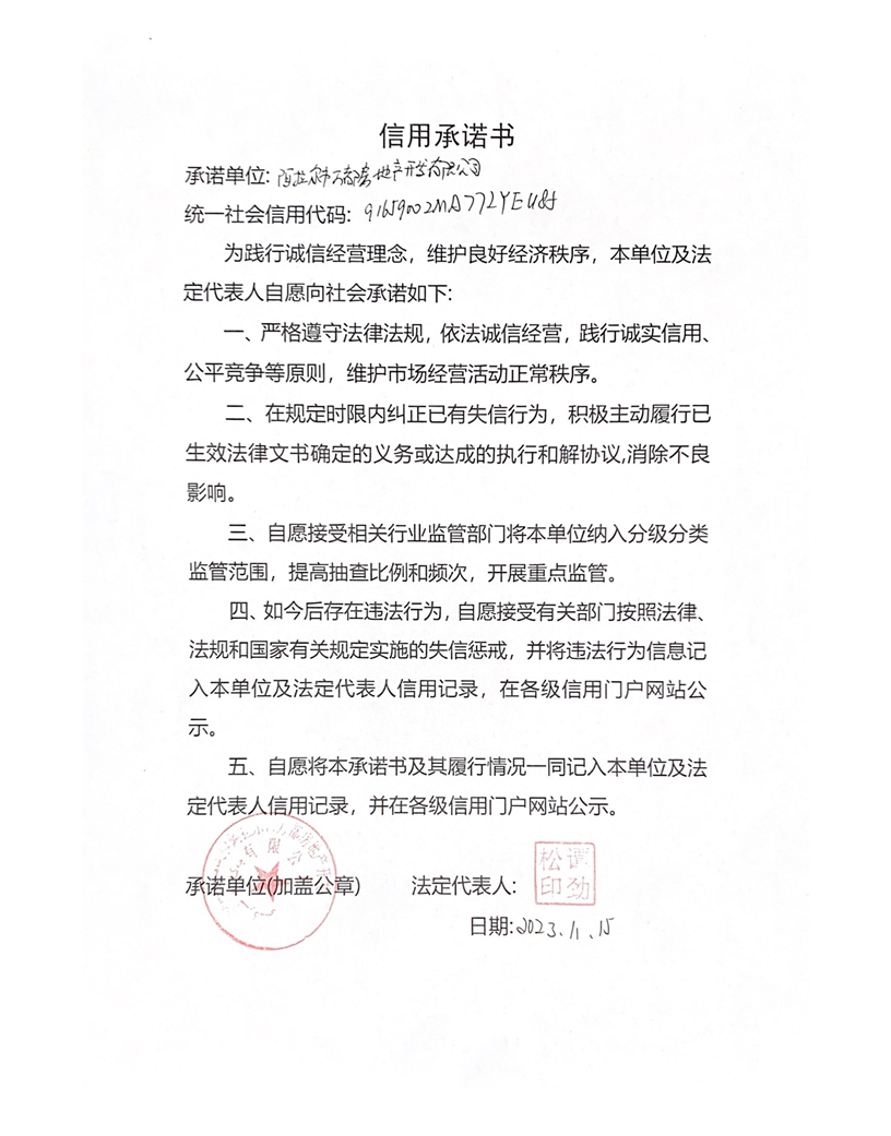 萬都房產(chǎn)信用承諾書