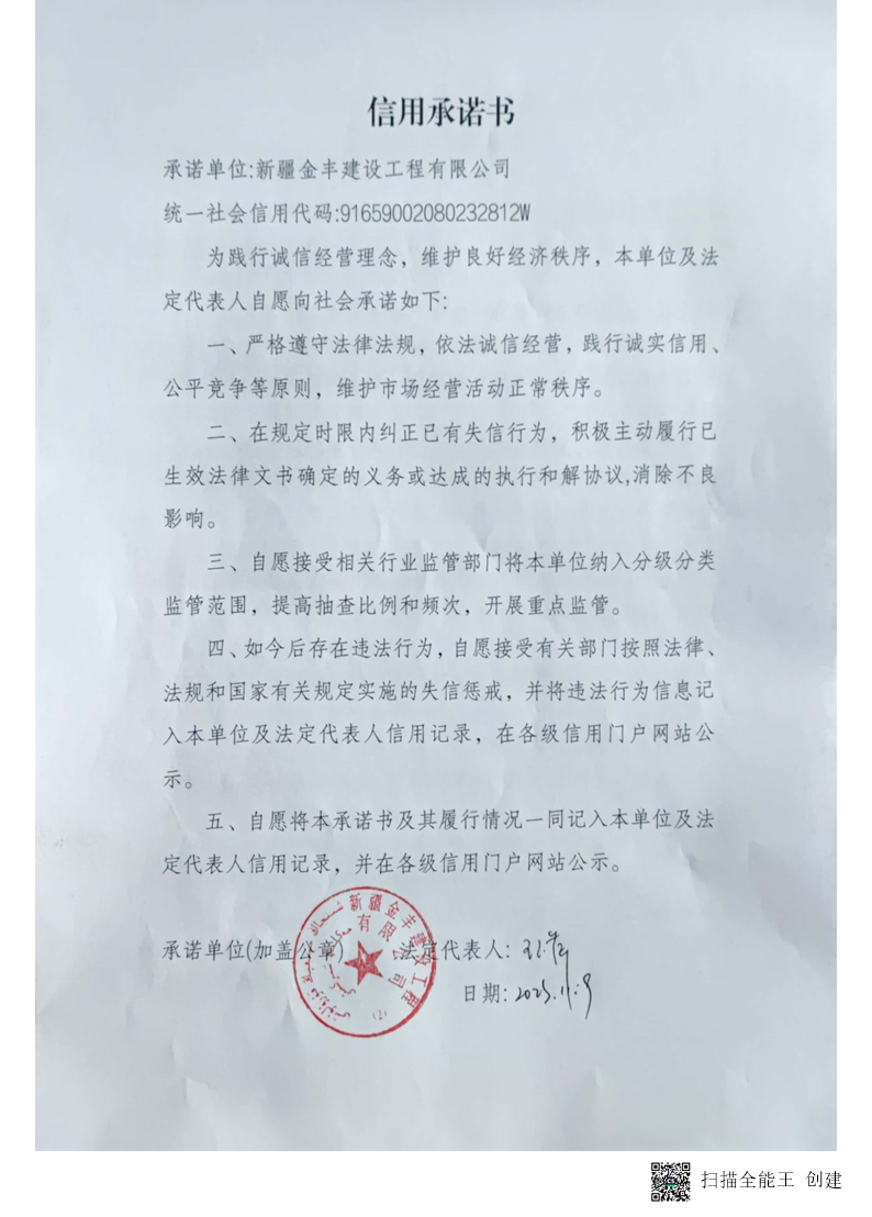 金豐建司信用承諾書