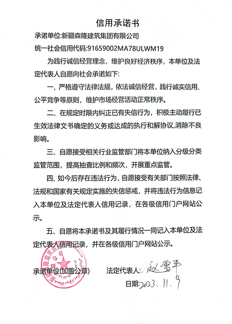森隆建司信用承諾書