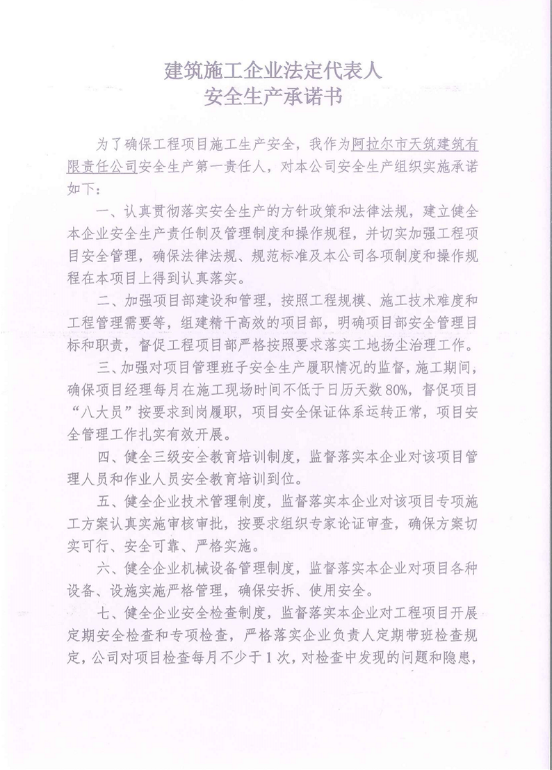 天筑建司安全生產承諾書