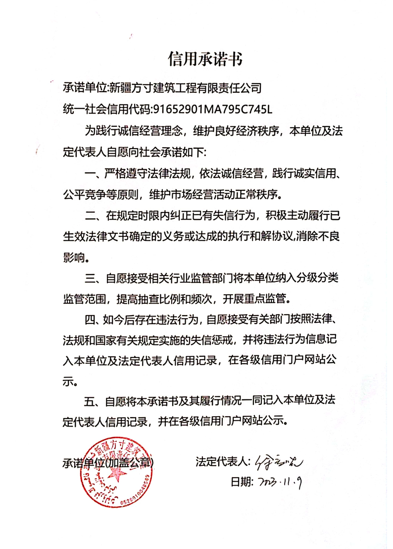 方寸建司信用承諾書