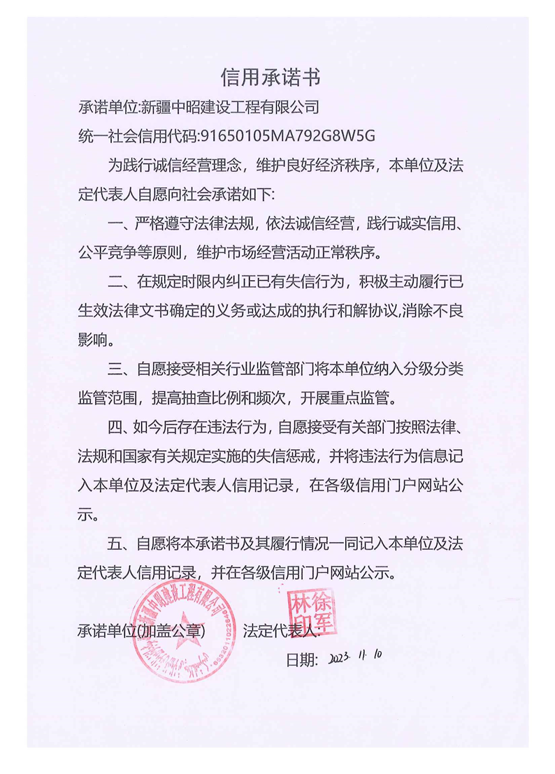 中昭建司信用承諾書