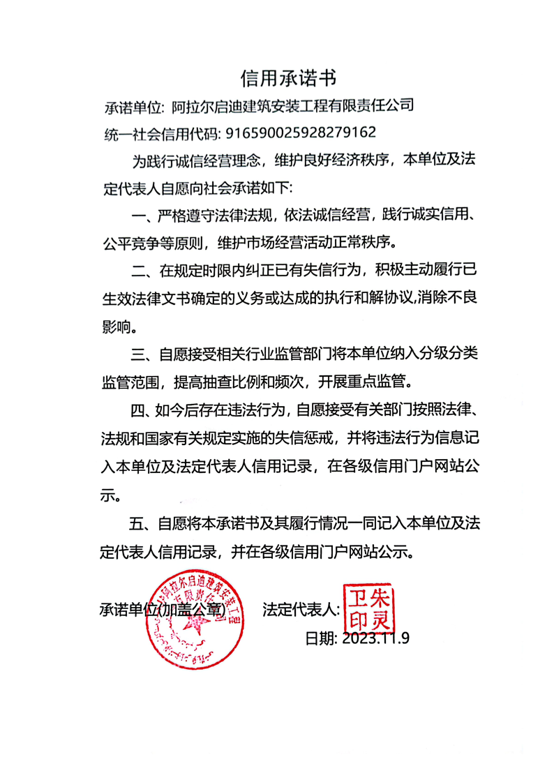 啟迪建司信用承諾書