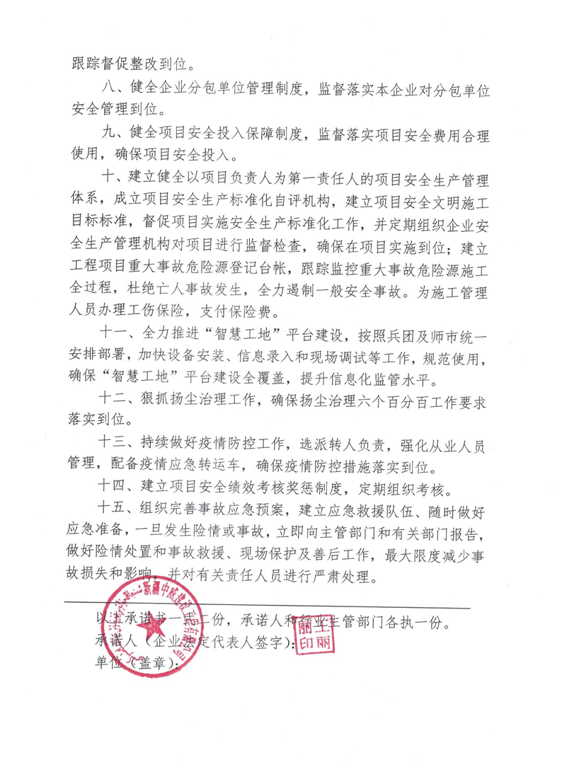 中威建司安全生產(chǎn)承諾書