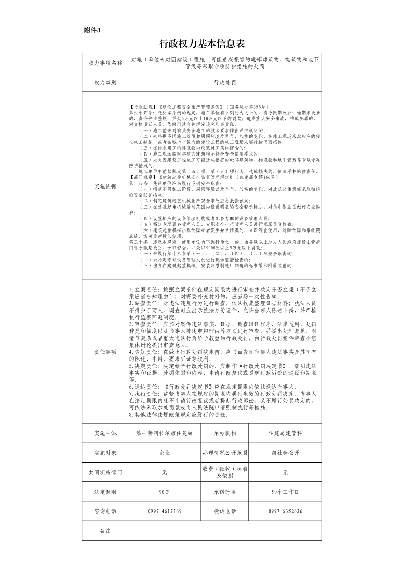 136、對施工單位未對因建設工程施工可能造成損害的毗鄰建筑物、構筑物和地下管線等采取專項防護措施的處罰