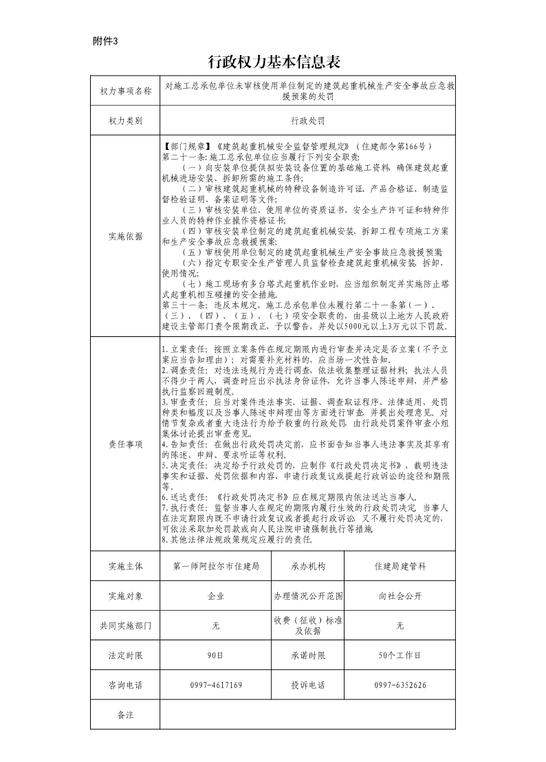 158、對施工總承包單位未審核使用單位制定的建筑起重機械生產安全事故應急救援預案的處罰