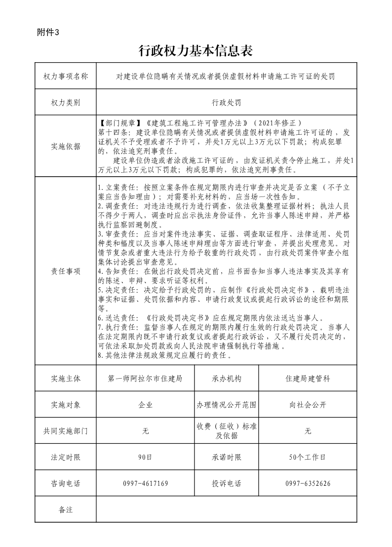 192、對建設單位隱瞞有關情況或者提供虛假材料申請施工許可證的處罰