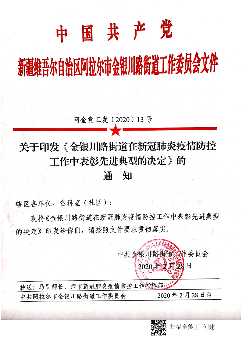 關于印發《金銀川路街道在新冠肺炎疫情防控工作中表彰先進典型決定》的通知