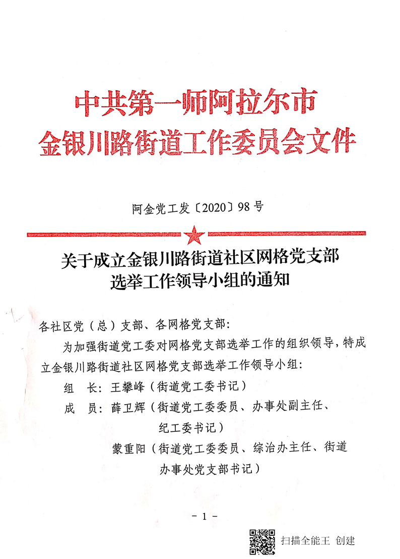關于成立金川路街道社區網格黨支部選舉工作領導小組的通知