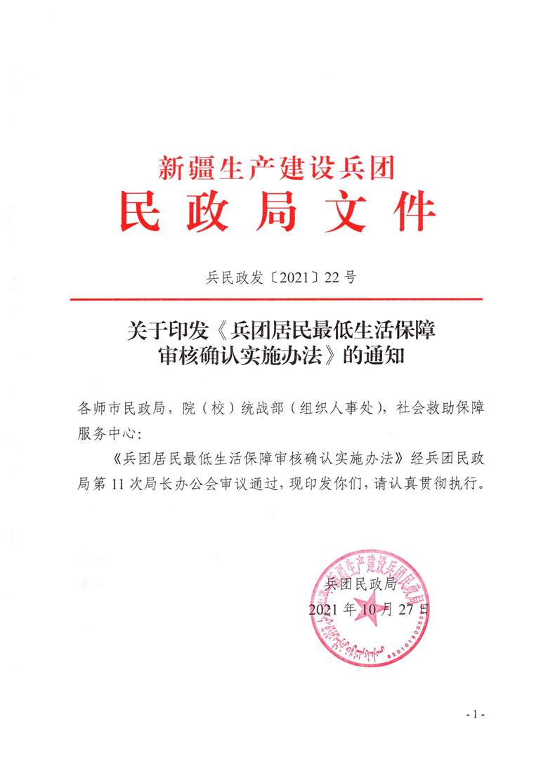 關于印發《兵團居民最低生活保障審核確認實施辦法》的通知
