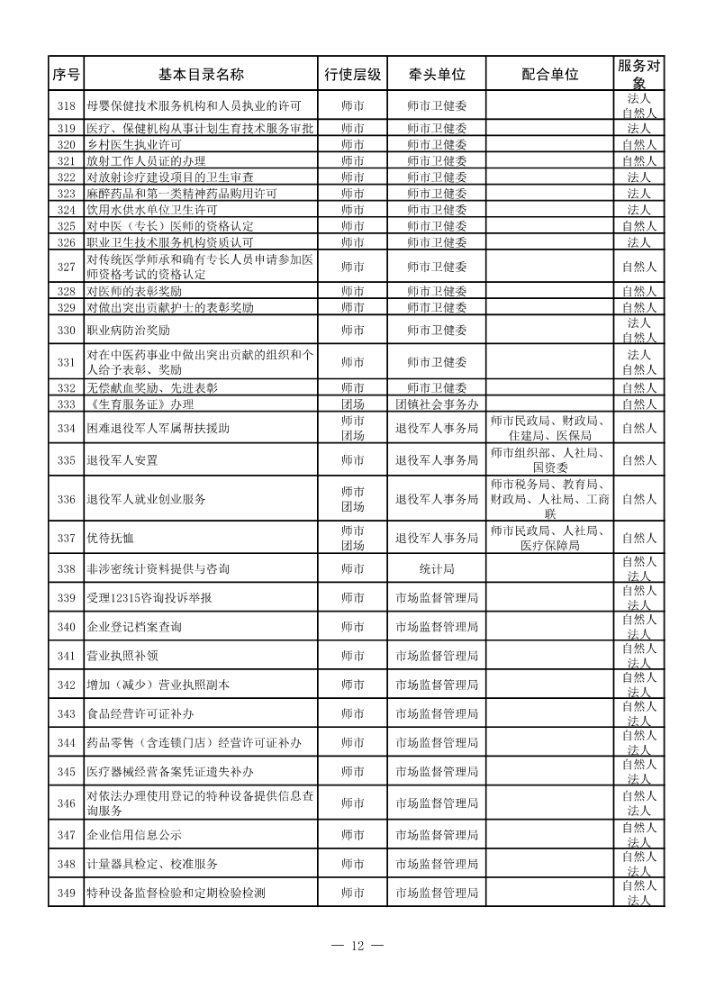 師市市場監管局公共服務事項清單
