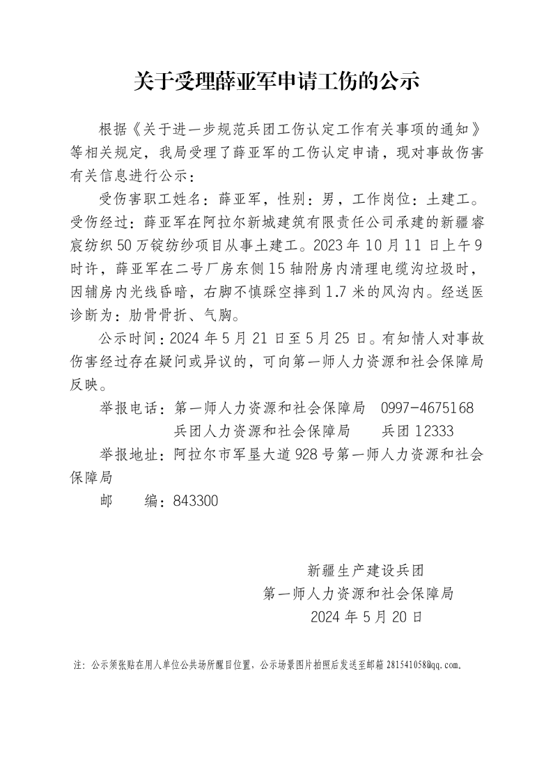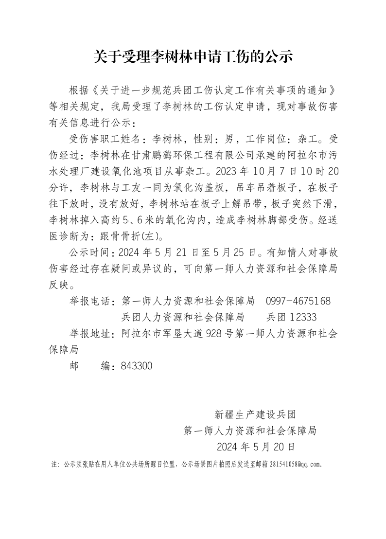 關于受理胡金水等15人申請工傷的公示