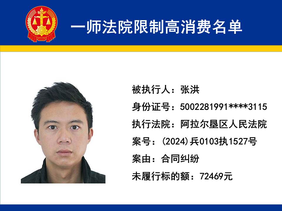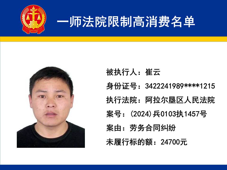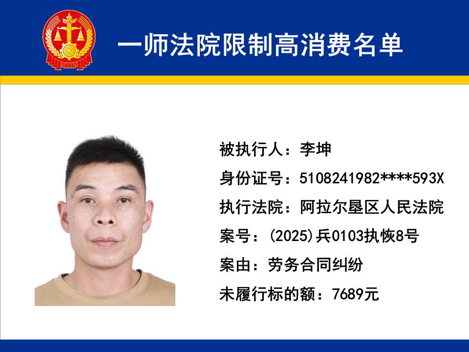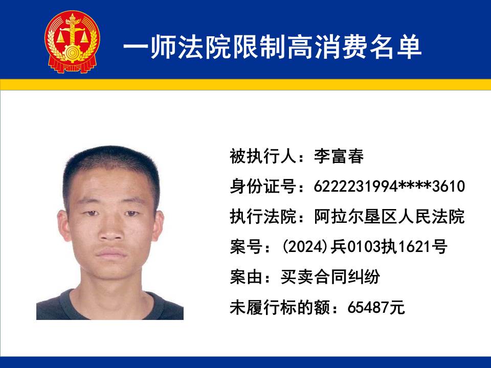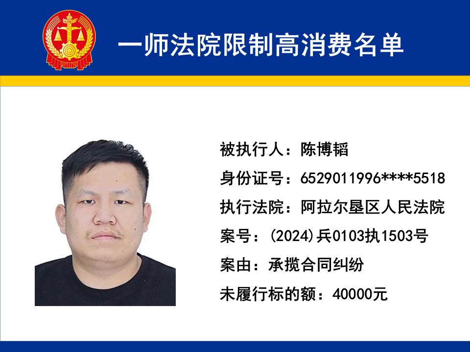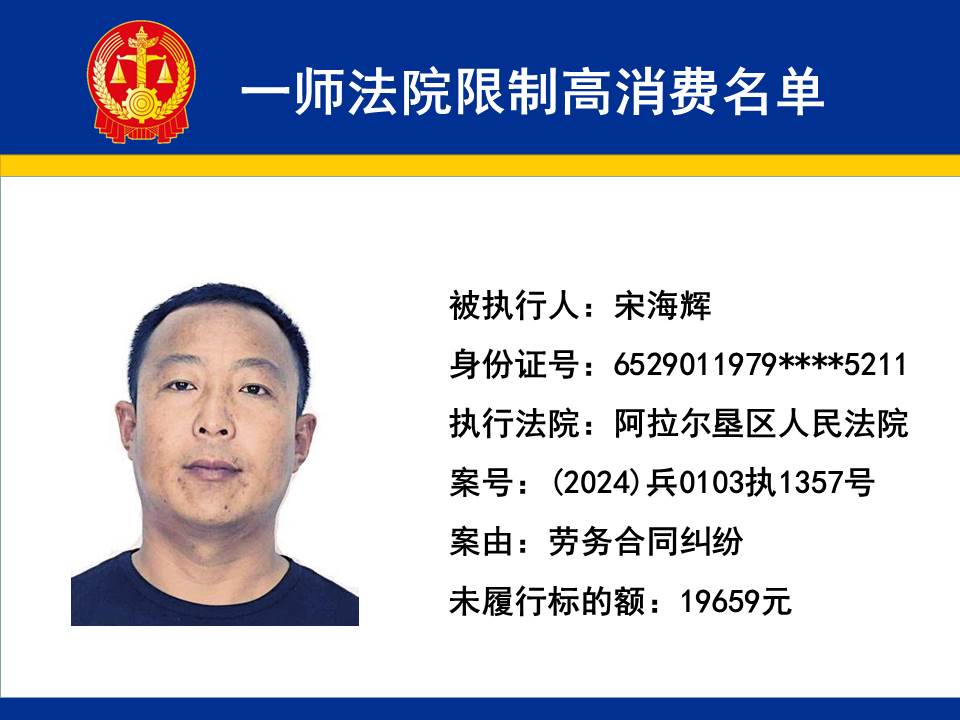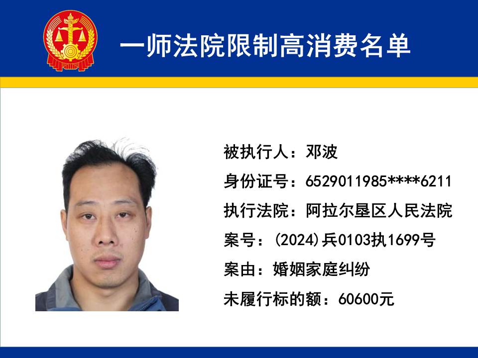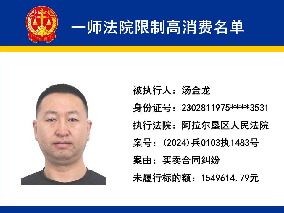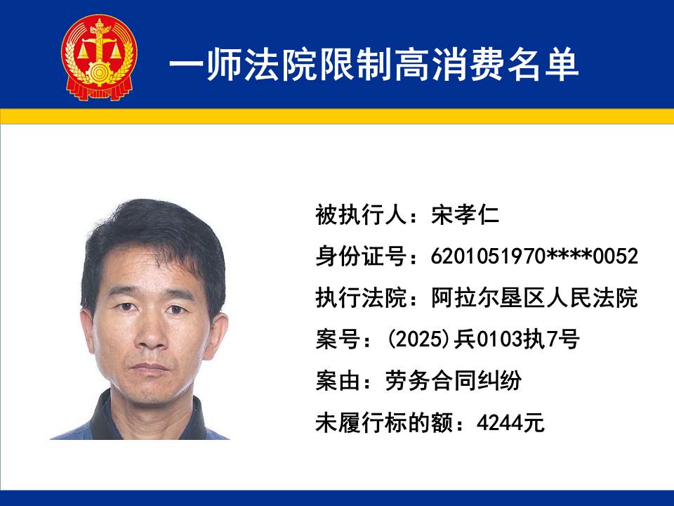 為切實保障申請執行人的合法權益,維護司法權威,依據《最高人民法院關于限制被執行人高消費及有關消費的若干規定》第一條、第六條、第七條之規定,第一師中級人民法院對不履行生效法律文書的下列被執行人依法發出限制高消費令,促使被執行人自覺履行法律文書確定的義務,現將以下限制高消費被執行人名單予以公布曝光: