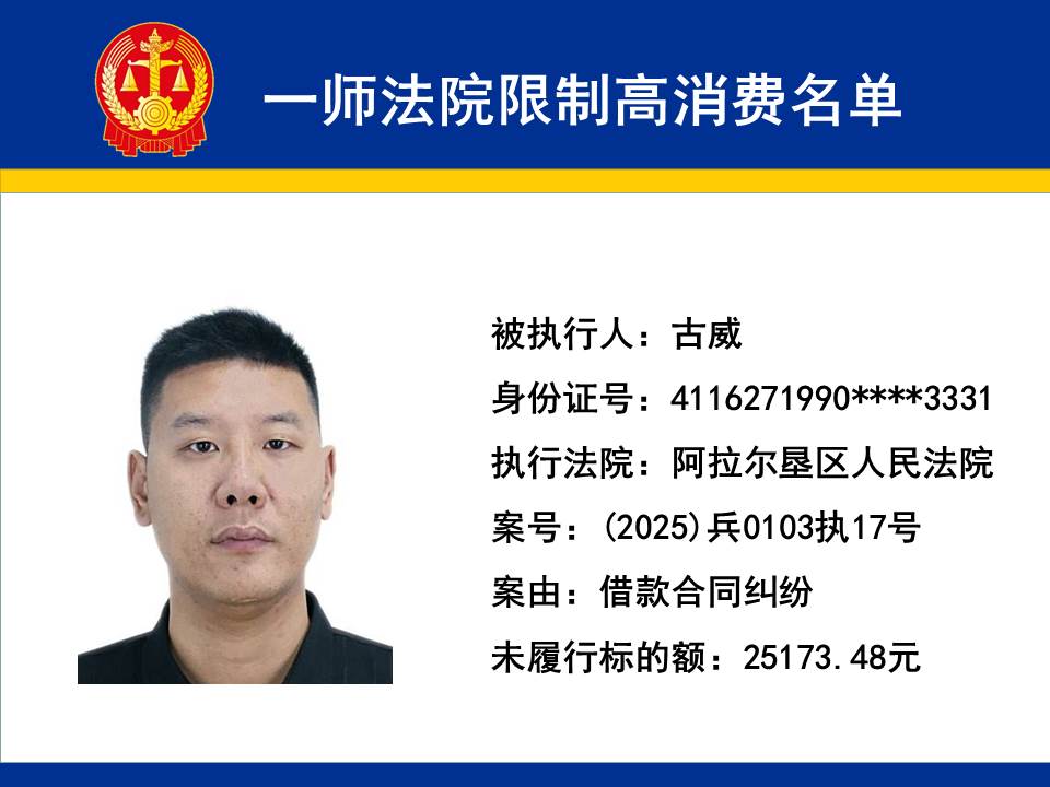 第一師中級人民法院限制高消費名單(2025年第三期)