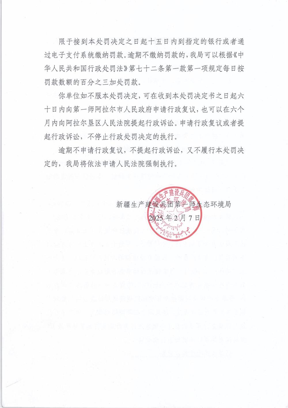 關于阿拉爾市創玖國有資產經營有限責任公司《行政處罰決定書》的公示