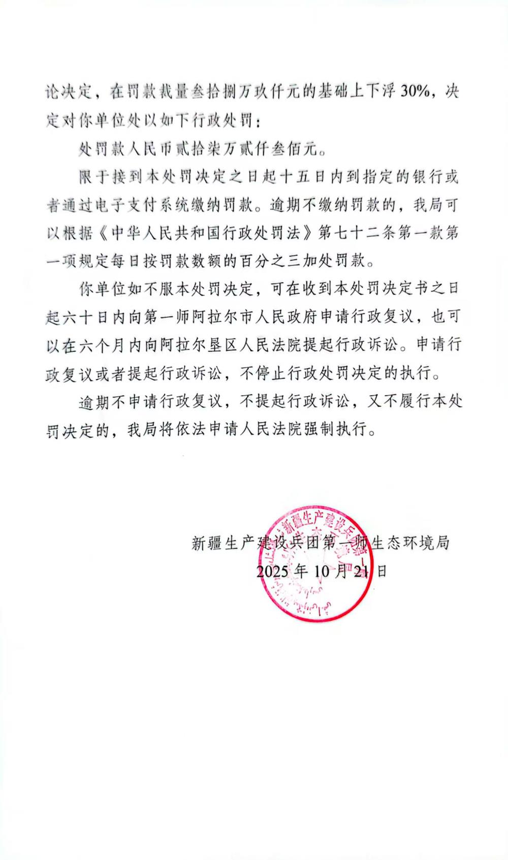 關于阿拉爾供排水有限責任公司《行政處罰決定書》的公示