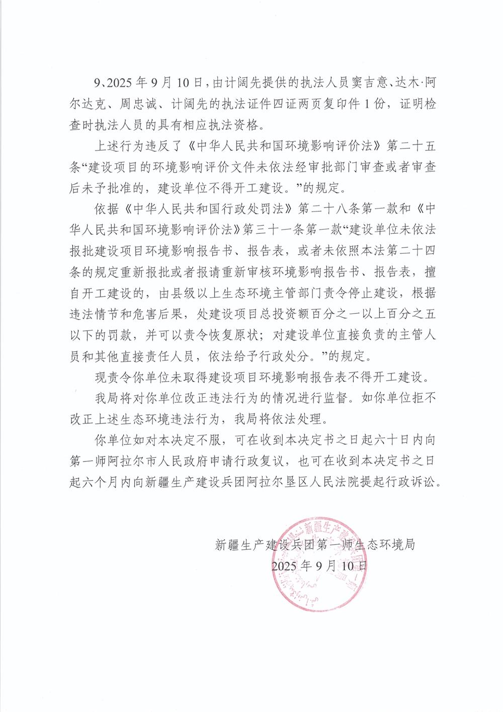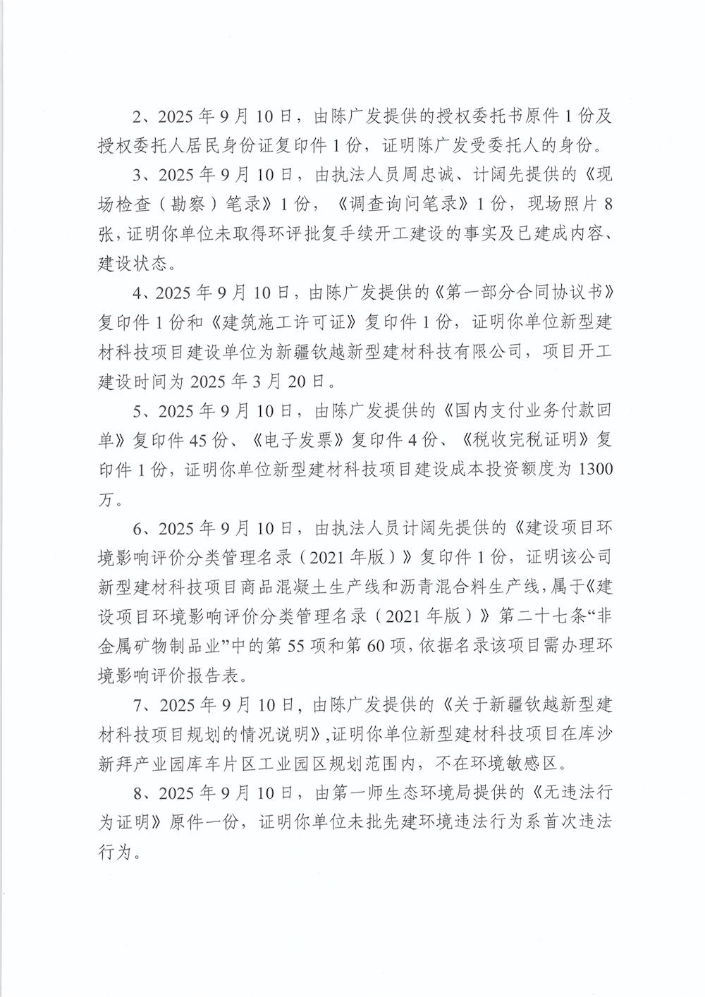 關于新疆欽越新型建材科技有限公司《責令改正違法行為決定書》的公示