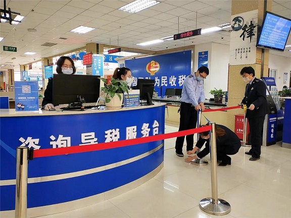 我們倡導企業和群眾首選網上辦、掌上辦、自助辦,對需要現場辦理業務的,我們進行合理引導、分流,避免人群短時扎堆聚集。