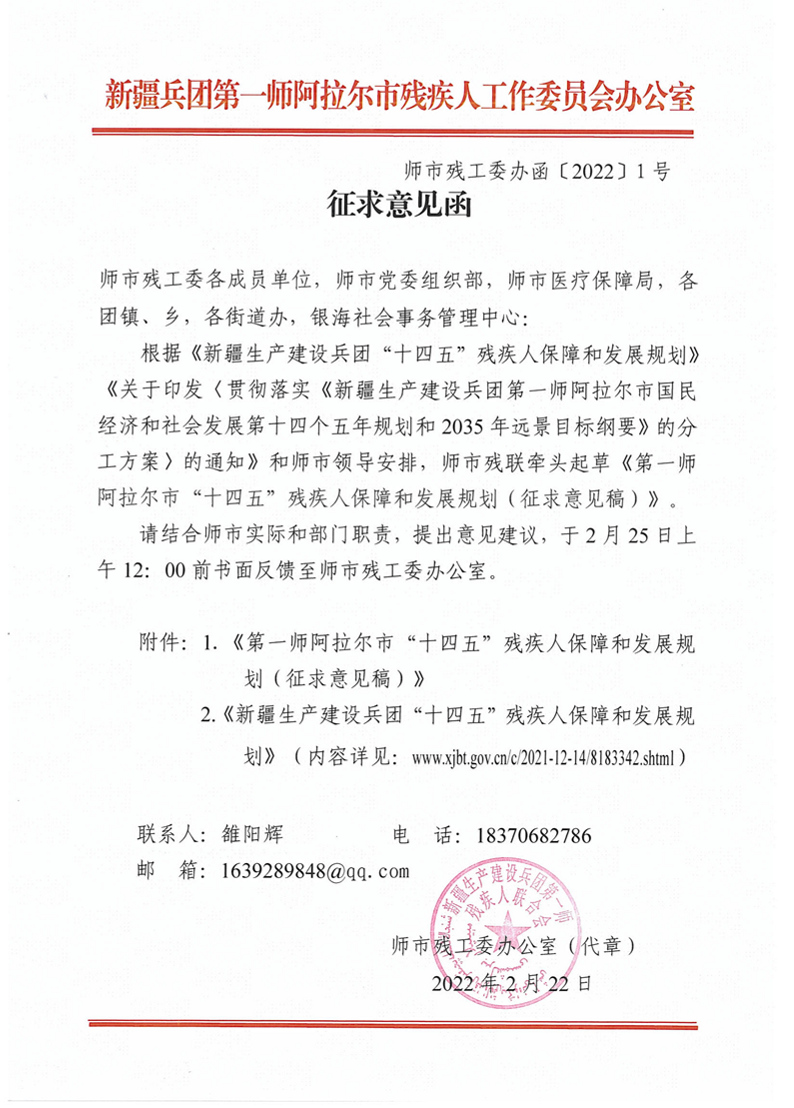 第一師阿拉爾市“十四五”殘疾人保障和發展規劃(征求意見稿)