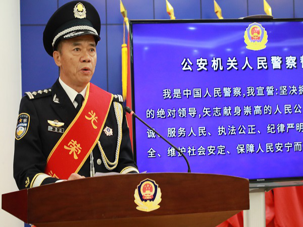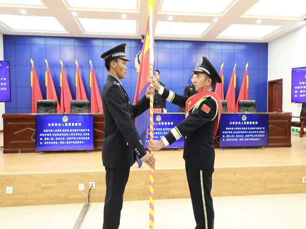 他強調,退休民警代表將象征光榮和使命的旗幟,鄭重地交到青年民警手中。這傳遞的不僅是一面旗幟,更是一份沉甸甸的使命和責任。廣大青年民輔警,特別是年輕民輔警,要繼承和發揚好退休民警的經驗作風,要以此次旗幟的交接傳承為契機,進一步增強政治意識,嚴守政治規矩,牢記習近平總書記提出的“對黨忠誠、服務人民、執法公正、紀律嚴明”總要求,以老黨員、老干部、老前輩為榜樣,體悟敬業和實干,涵養為民情懷,繼承和發揚老同志們的光榮傳統和優良作風,用青春和熱血續寫一師公安新的輝煌篇章,以優異成績迎接黨的二十大勝利召開!