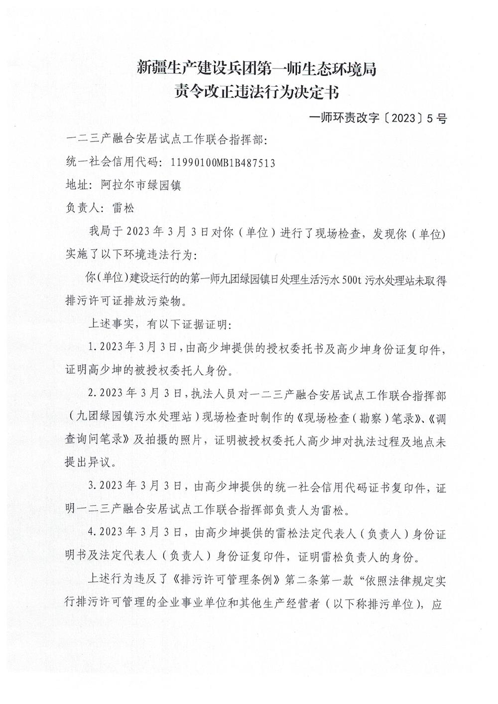 關于對一二三產安居試點工作聯合指揮部《責令改正違法行為決定書》的公示