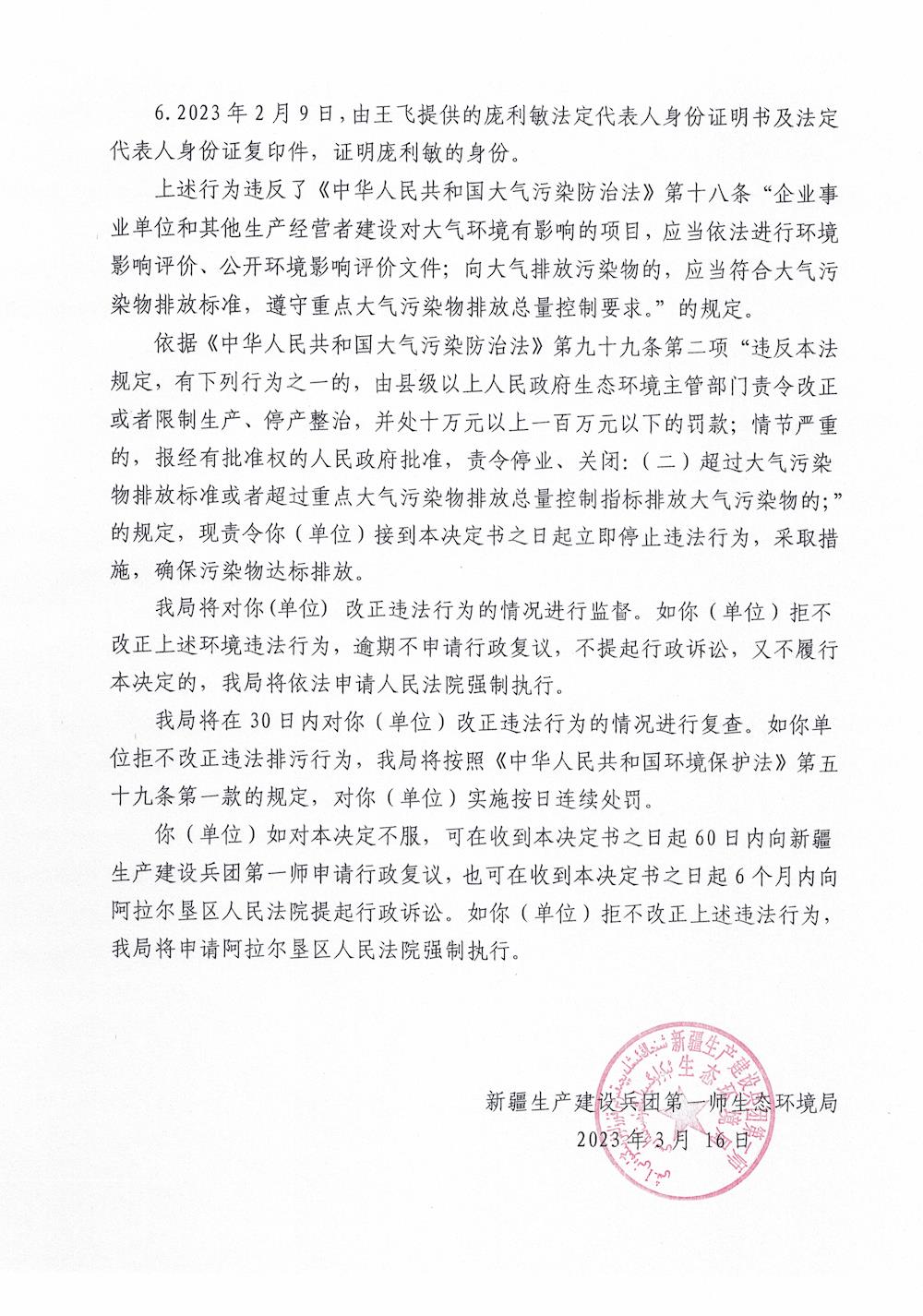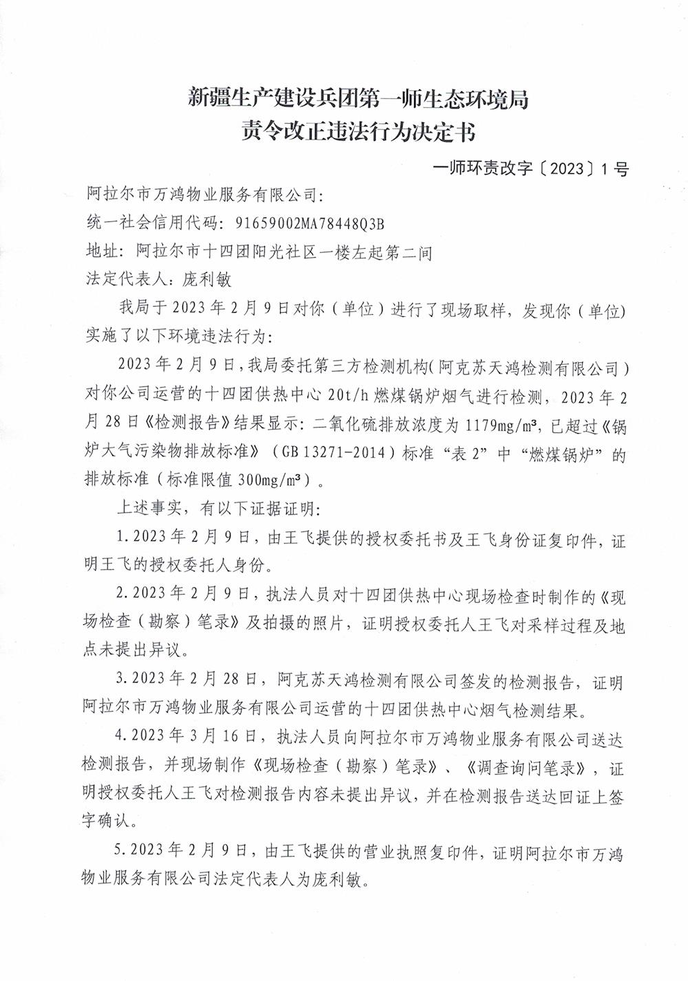 關于對阿拉爾市萬鴻物業服務有限公司《責令改正違法行為決定書》的公示