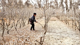 十三團棗農對棗樹進行間伐、間移
