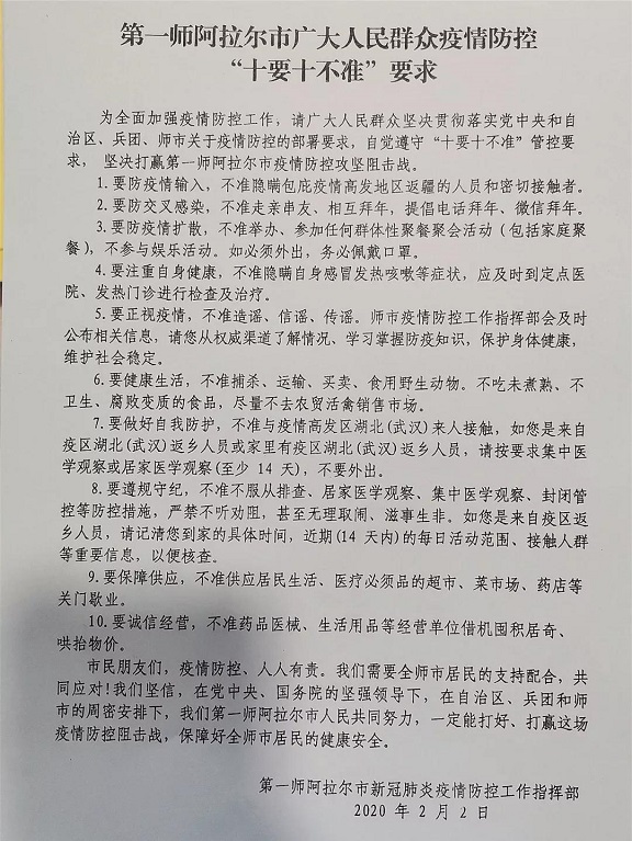 如今,走在第一師阿拉爾市的街道、小區,防疫宣傳聲聲入耳、抬頭可見,這些有力措施堅定了師市人民群眾抗擊疫情的信心,我們一定能打贏這場疫情防控阻擊戰!