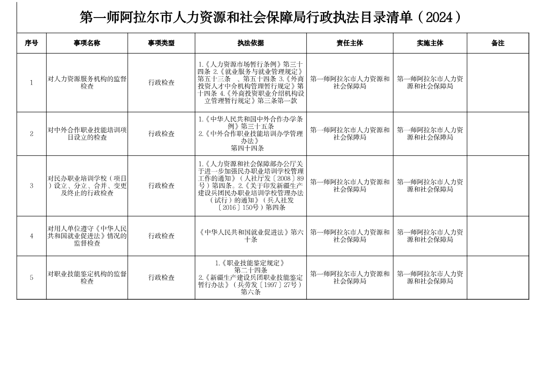 2024年師市人社局行政執法目錄清單(公示2.3)