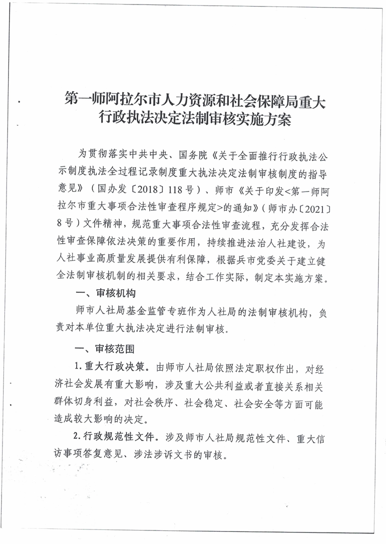 第一師阿拉爾市人力資源和社會保障局重大行政執法決定法制審核實施方案