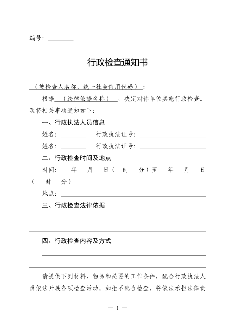 第一師生態(tài)環(huán)境局行政檢查文書格式