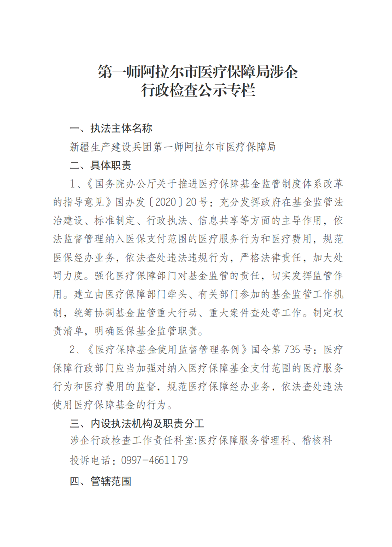 第一師阿拉爾市醫療保障局涉企行政檢查公示