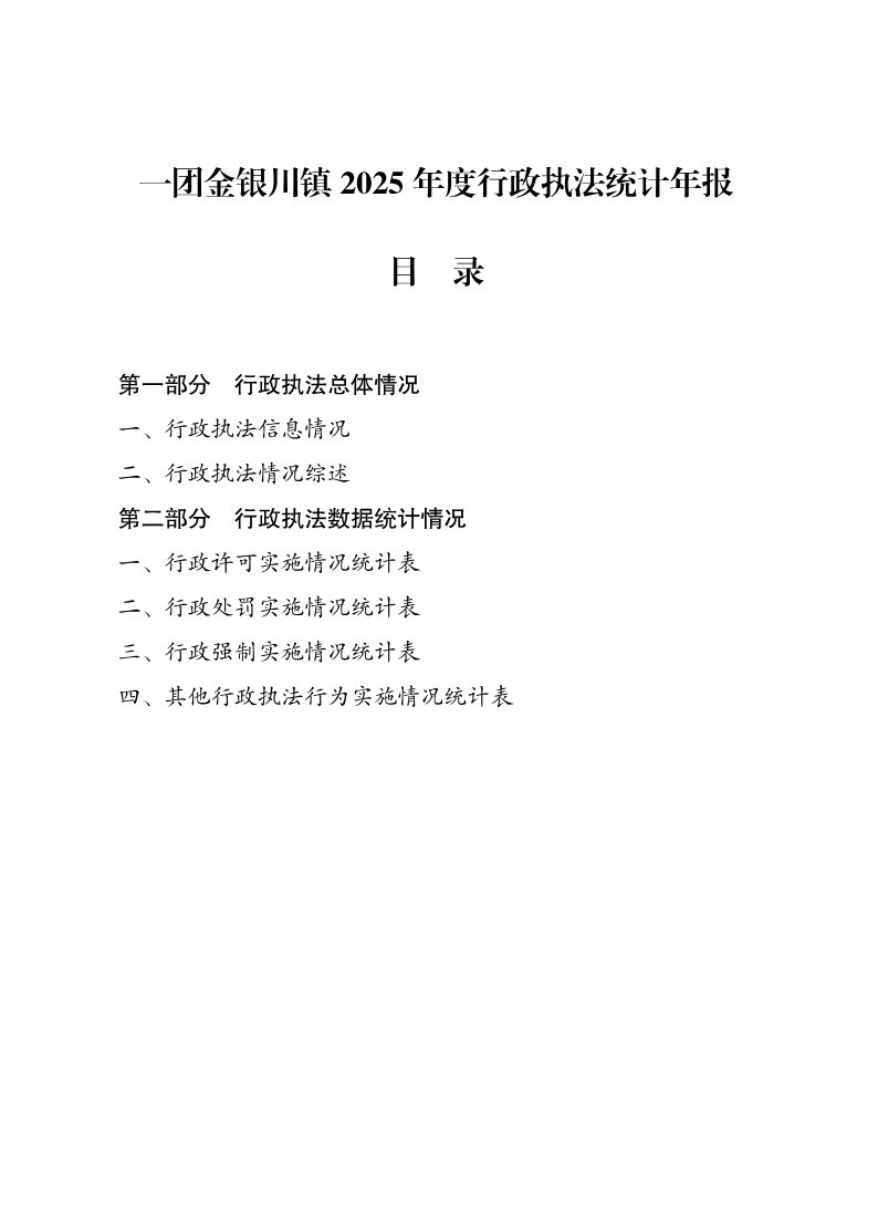 一團(tuán)金銀川鎮(zhèn)2025年度行政執(zhí)法統(tǒng)計(jì)年報(bào)
