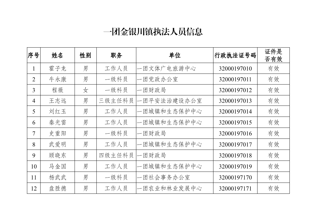 一團(tuán)金銀川鎮(zhèn)執(zhí)法人員信息