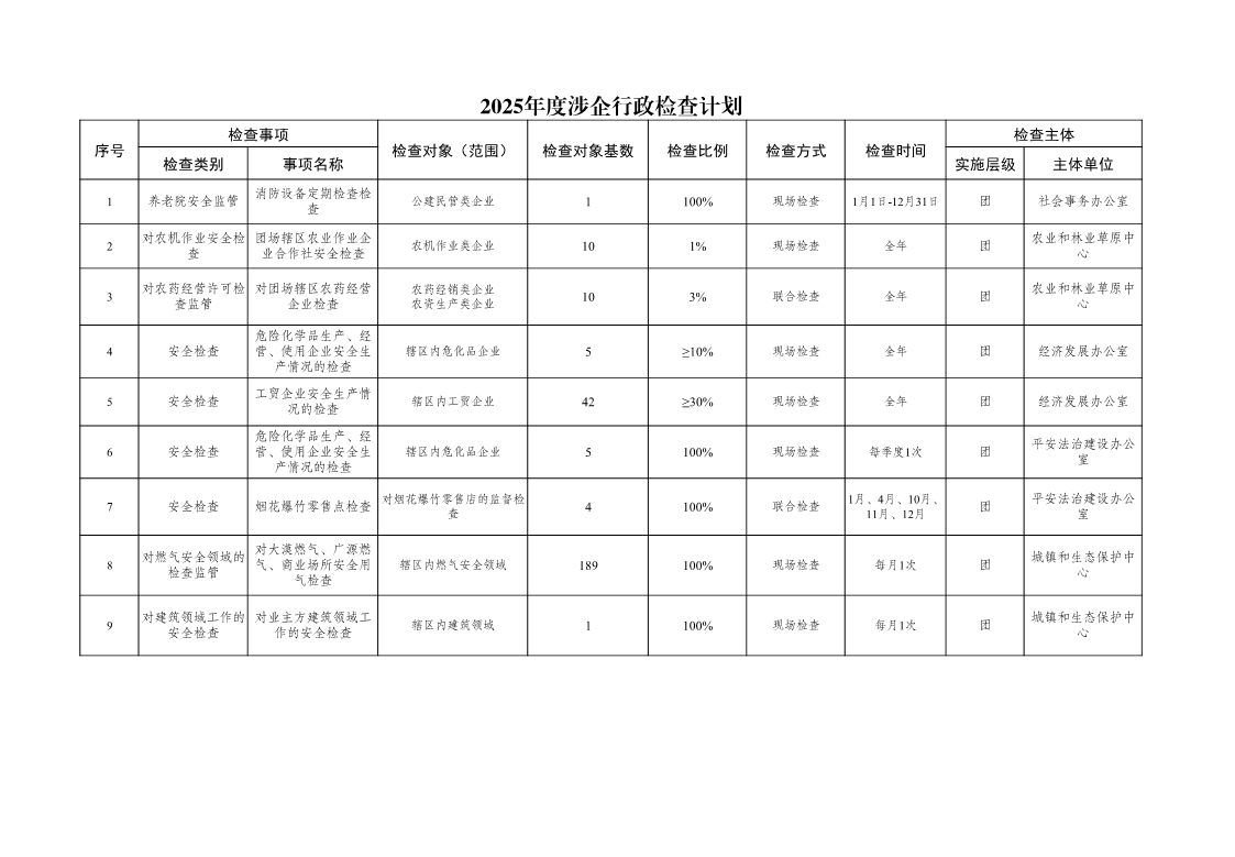 涉企行政檢查計(jì)劃