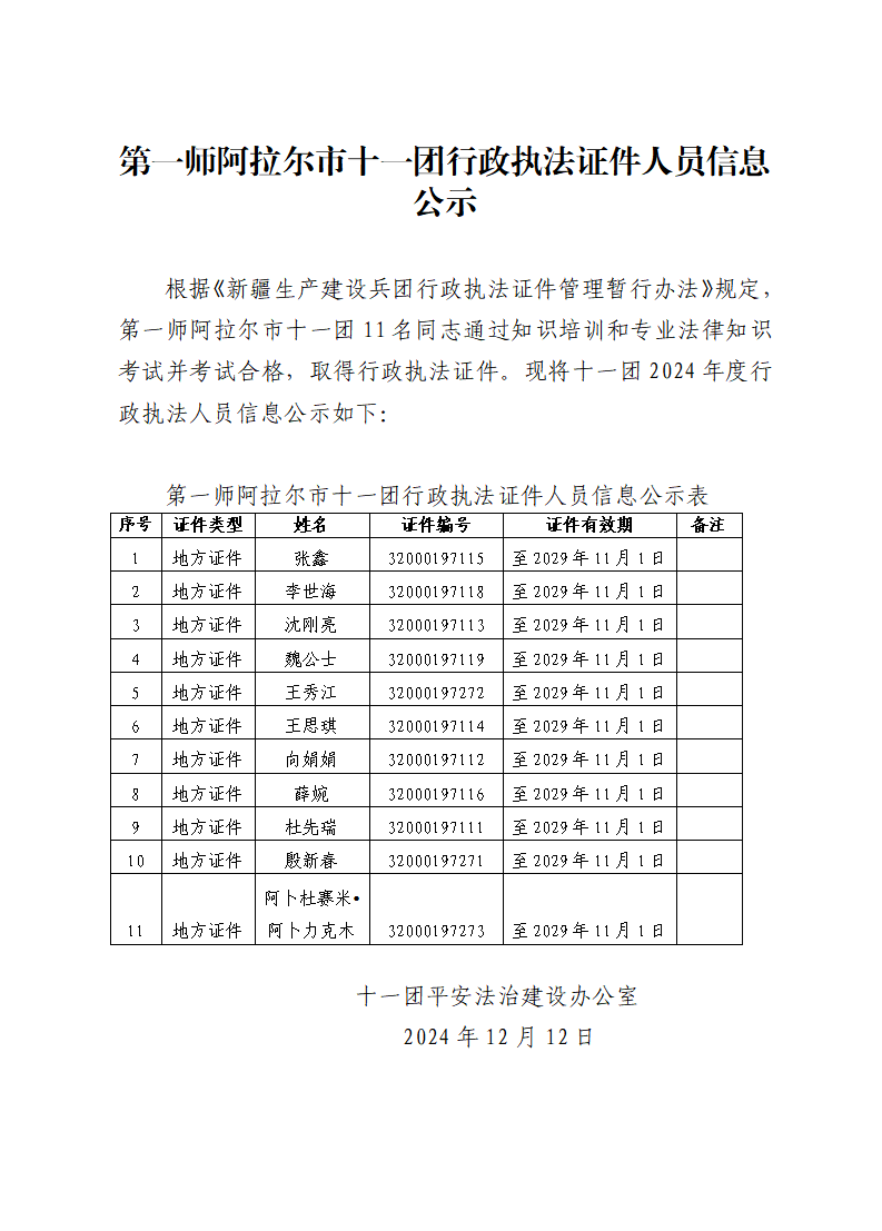 十一團執法人員信息