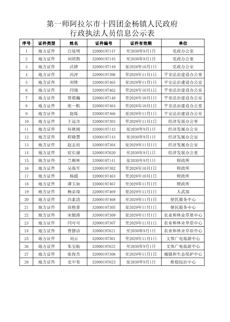 十四團金楊鎮人民政府行政執法人員信息公示表