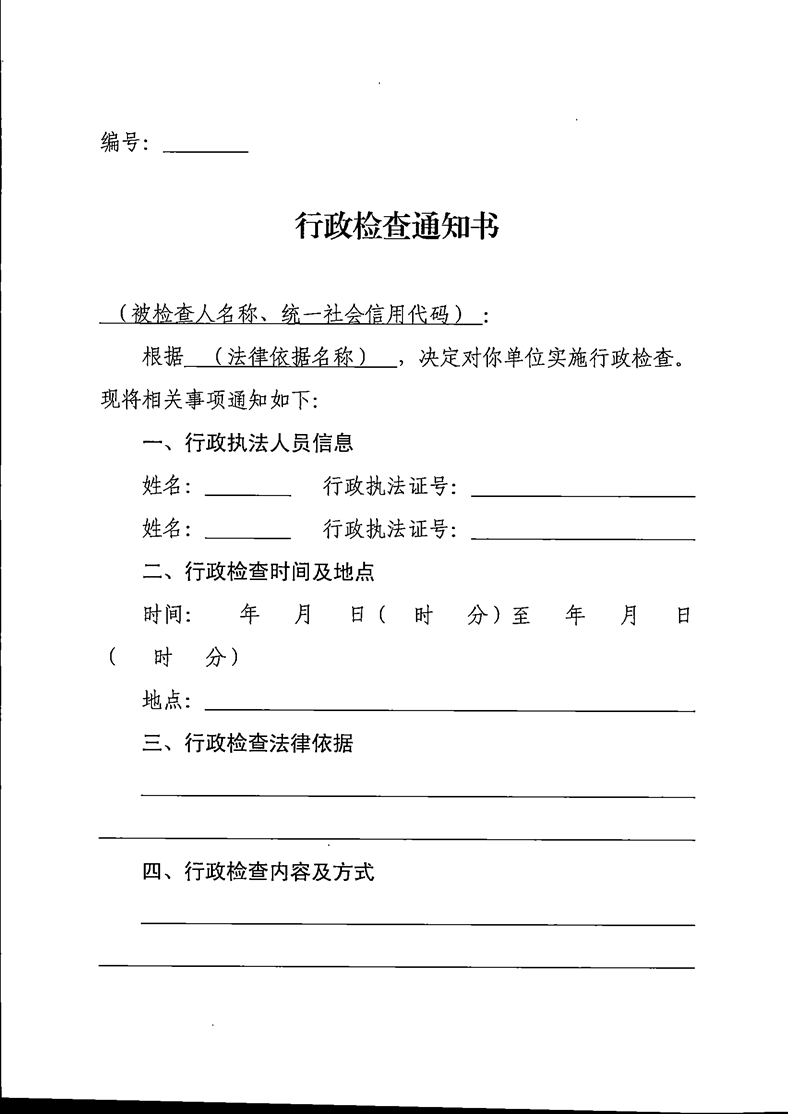 十六團新開嶺鎮行政檢查通知書